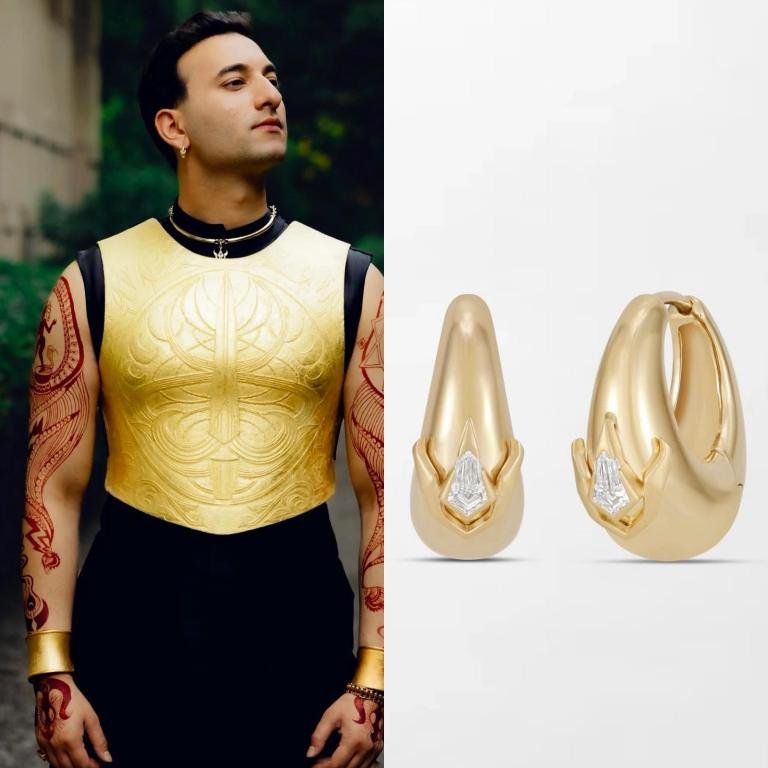 Rishab Rikhiram Sharma doesn’t just play the sitar; he translates it, and a lot of it is spoken through what he dons, especially the jewellery. For his latest Delhi Tour, Tamannaah Fine Jewellery created its first major, bespoke custom piece, signature plump hoops reborn with Trishul. Sharma donned a culpted torque necklace with a custom-made Trishul drop crafted for him, a creation that’s that’s sharp, minimal and deeply symbolic – and it marked a smooth collaboration between Rishab and Tamannaah Bhatia!